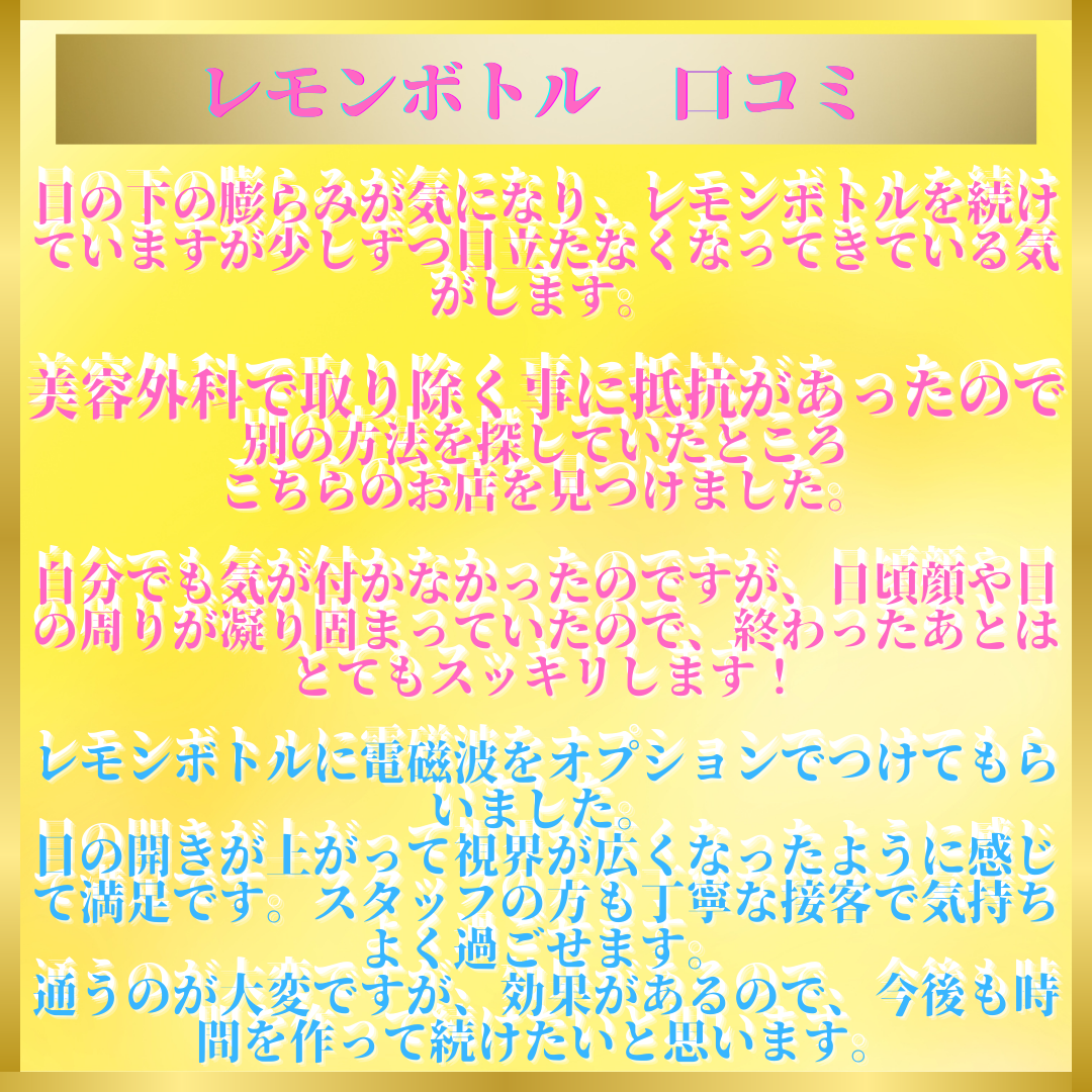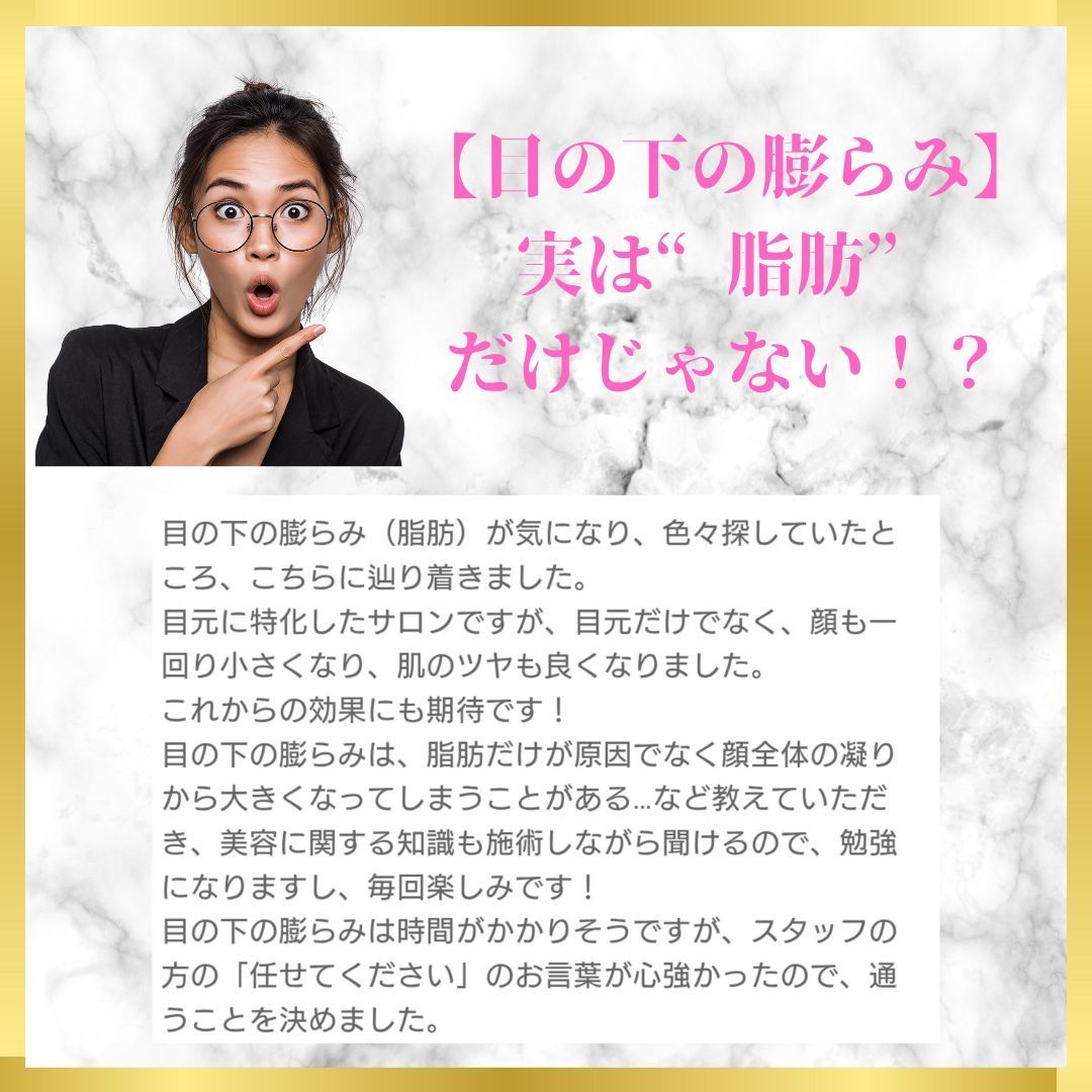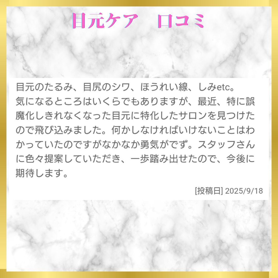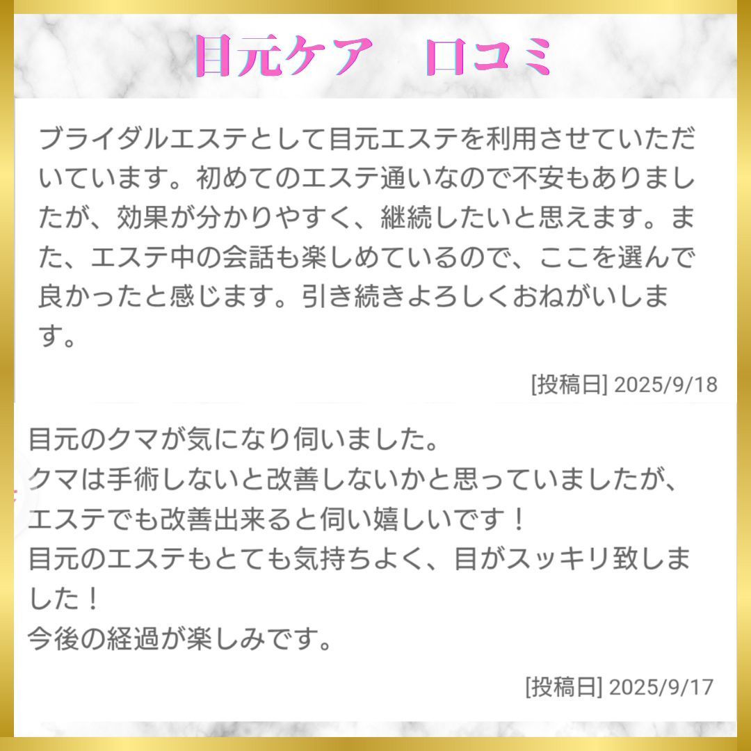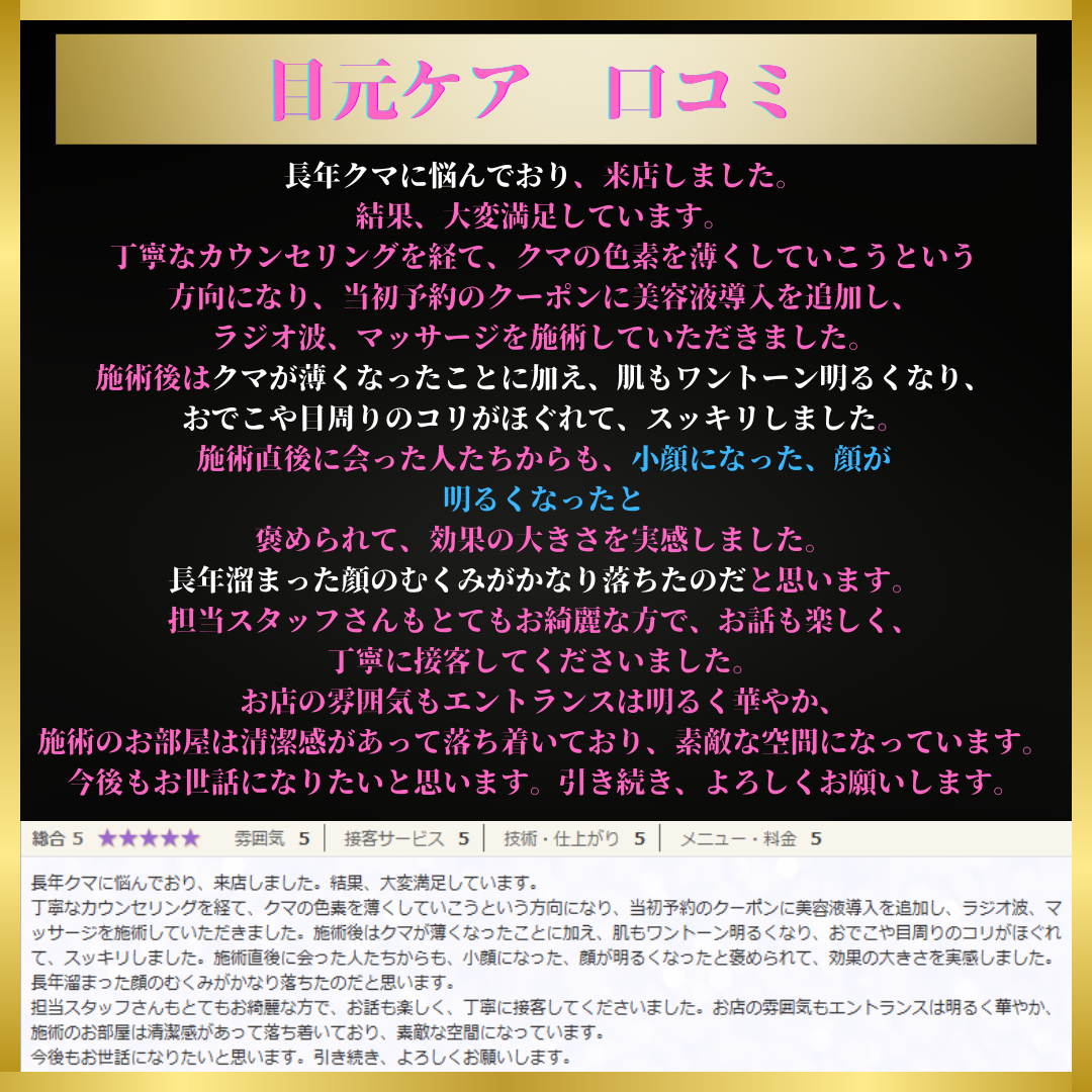「初めての目元エステでしたが、施術後のまぶたの軽さに感動。むくみも取れて期待以上の効果でした!」